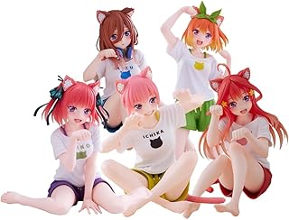 Jilijia 5 figuras de anime, The Quintaesencia Quintuplets, figura de Nakano Miku/Nakono Yotsuba, modelos de personajes, lindos gatos, decoración de escritorio, adornos de colección de PVC, regalo